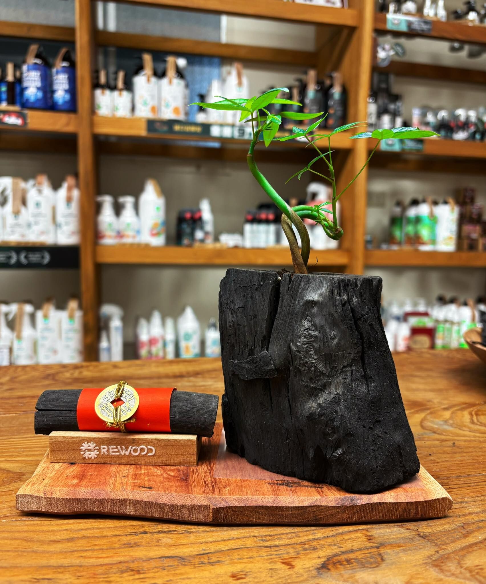 Rewood 龍眼炭盆栽-聚財